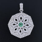 Discover timeless elegance with this breathtaking Natural Alexandrite and Diamond Pendant. Designed in gleaming white gold and weighing 6.4 grams, this piece showcases an exceptional 0.45-carat, round-cut Alexandrite known for its enchanting green-to-blue color change. Surrounding the center gem are 167 dazzling round diamonds (0.85 carats total) of J color and SI3 clarity, arranged in an intricate, floral-inspired design. This pendant is a true statement of fine craftsmanship and luxury, making it the perfect accessory for those who appreciate rare and extraordinary jewelry.
