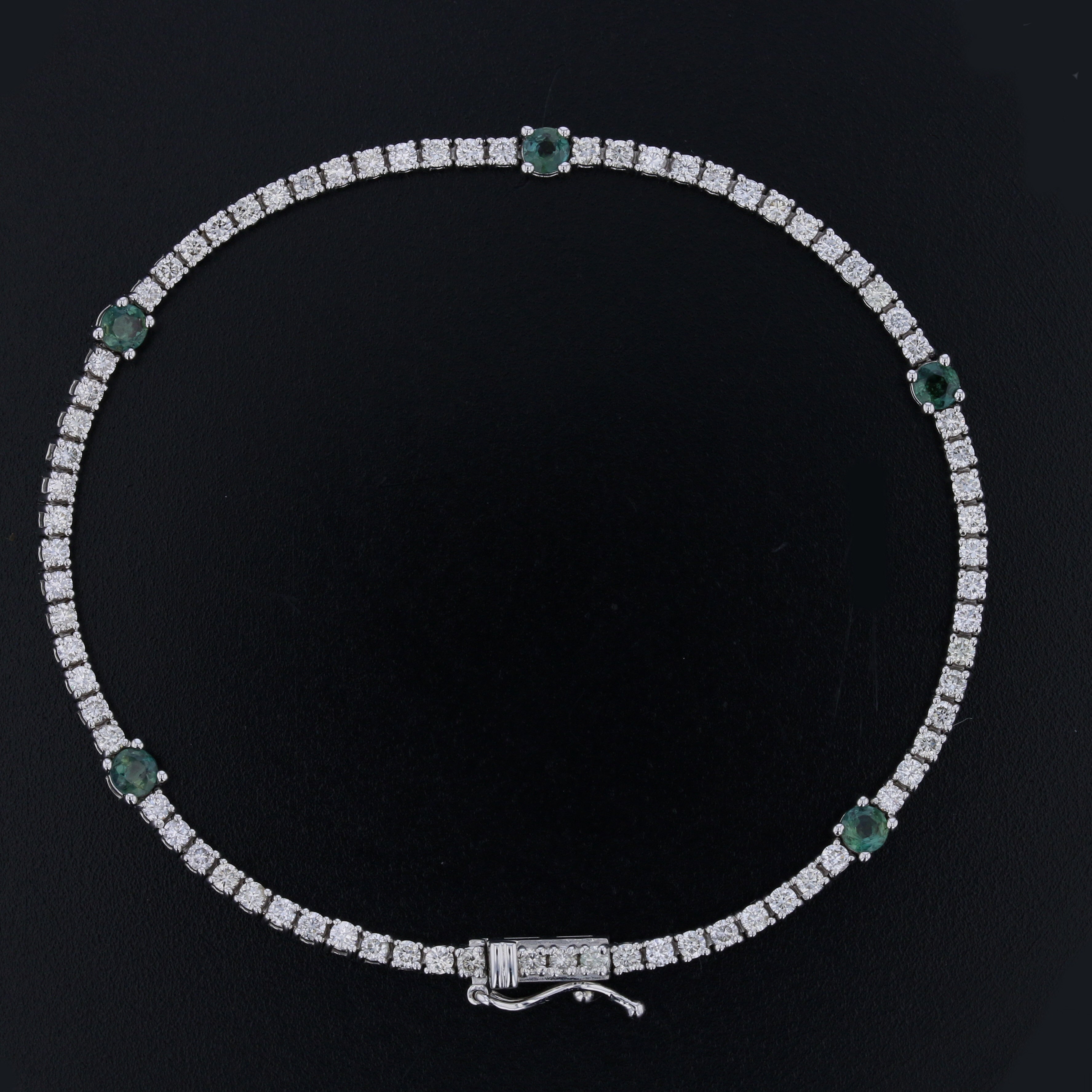 Elegant 14K white gold bracelet featuring 0.8 ct Alexandrites and 2 ct round diamonds. Luxurious and timeless design. Item Code: 893484.