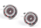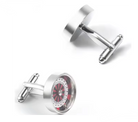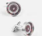 Bring the thrill of the casino to your formalwear with these unique Roulette Wheel Cufflinks. Measuring 3/4 inch wide by 1/4 inch thick, these cufflinks feature a detailed roulette wheel design encased in a sleek silver-tone frame. Perfect for adding a playful yet sophisticated touch to any outfit, these cufflinks are ideal for the dapper gentleman with a taste for excitement.