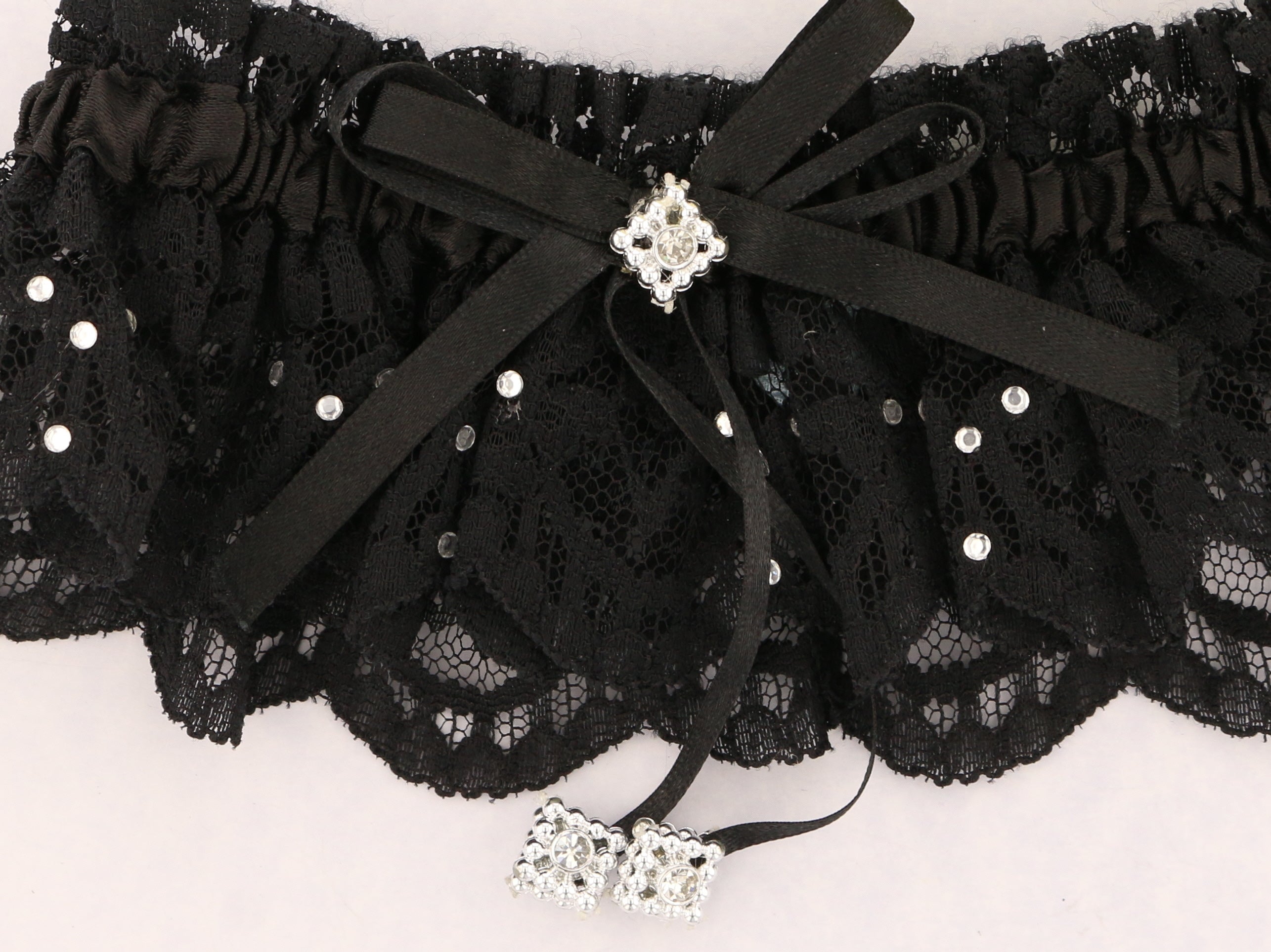 Lovers Knot Crystal Pink Nottingham Lace Bridal Garter