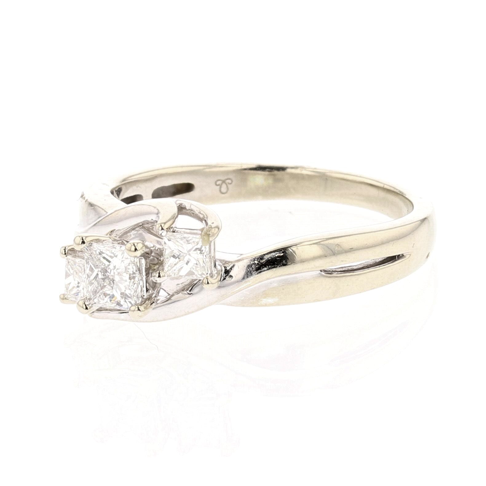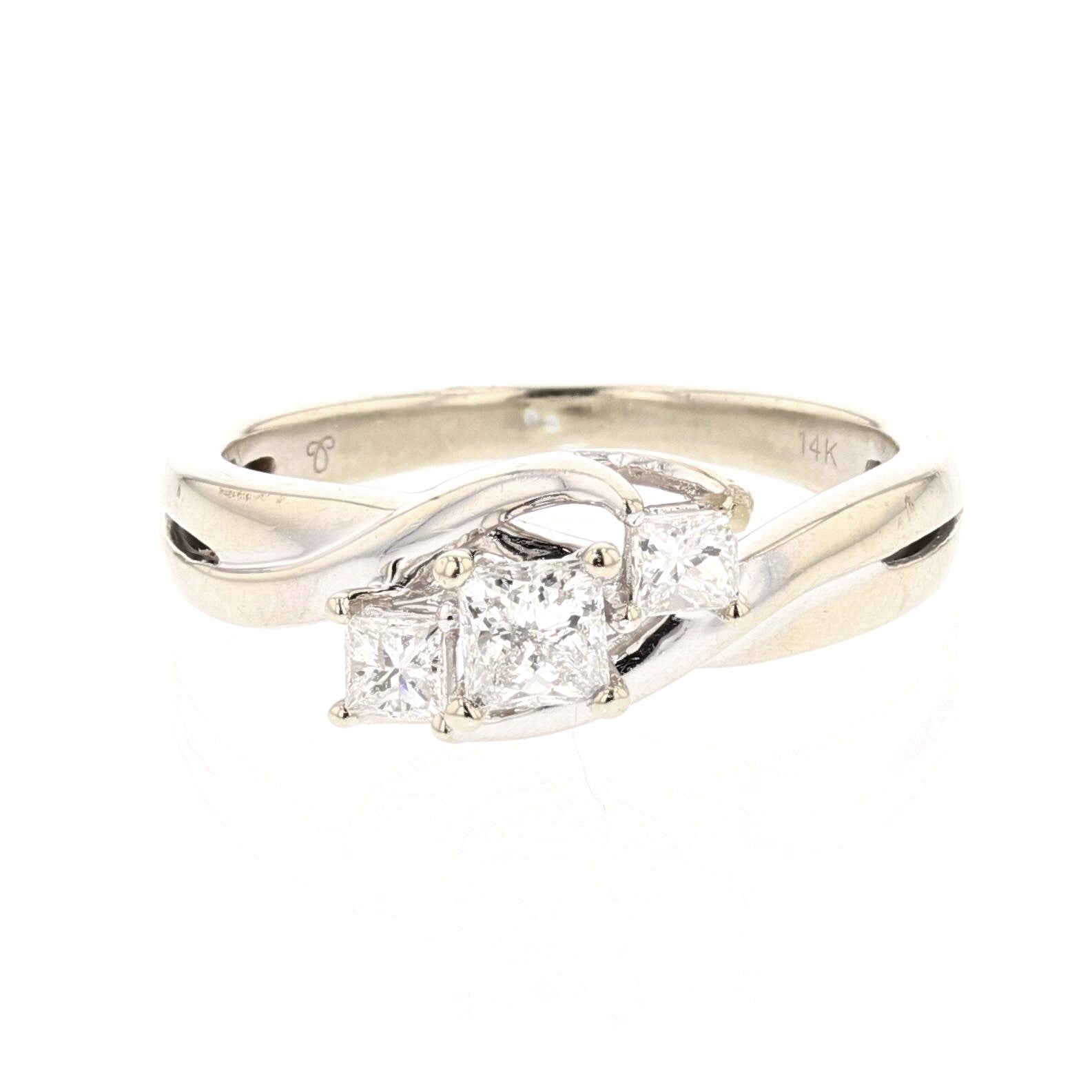 14K White Gold 3 Stone Princess Cut Diamond Engagement/Bridal Ring