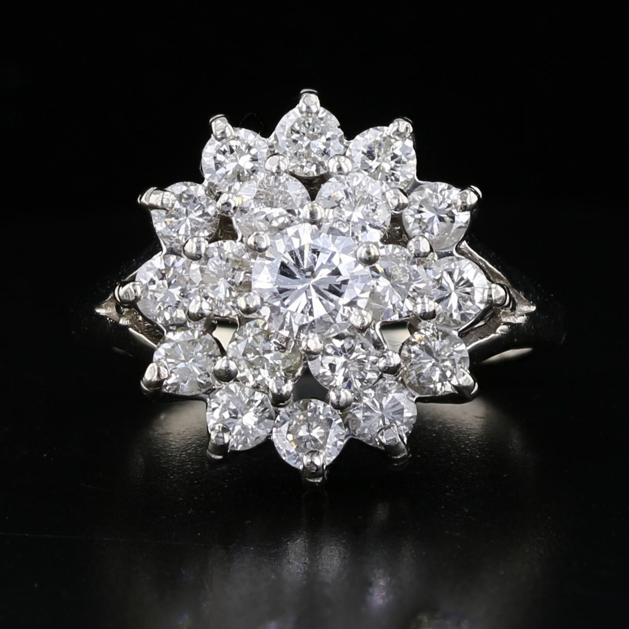 Vintage 14K White Gold 1.98ct Diamond Cluster Ring