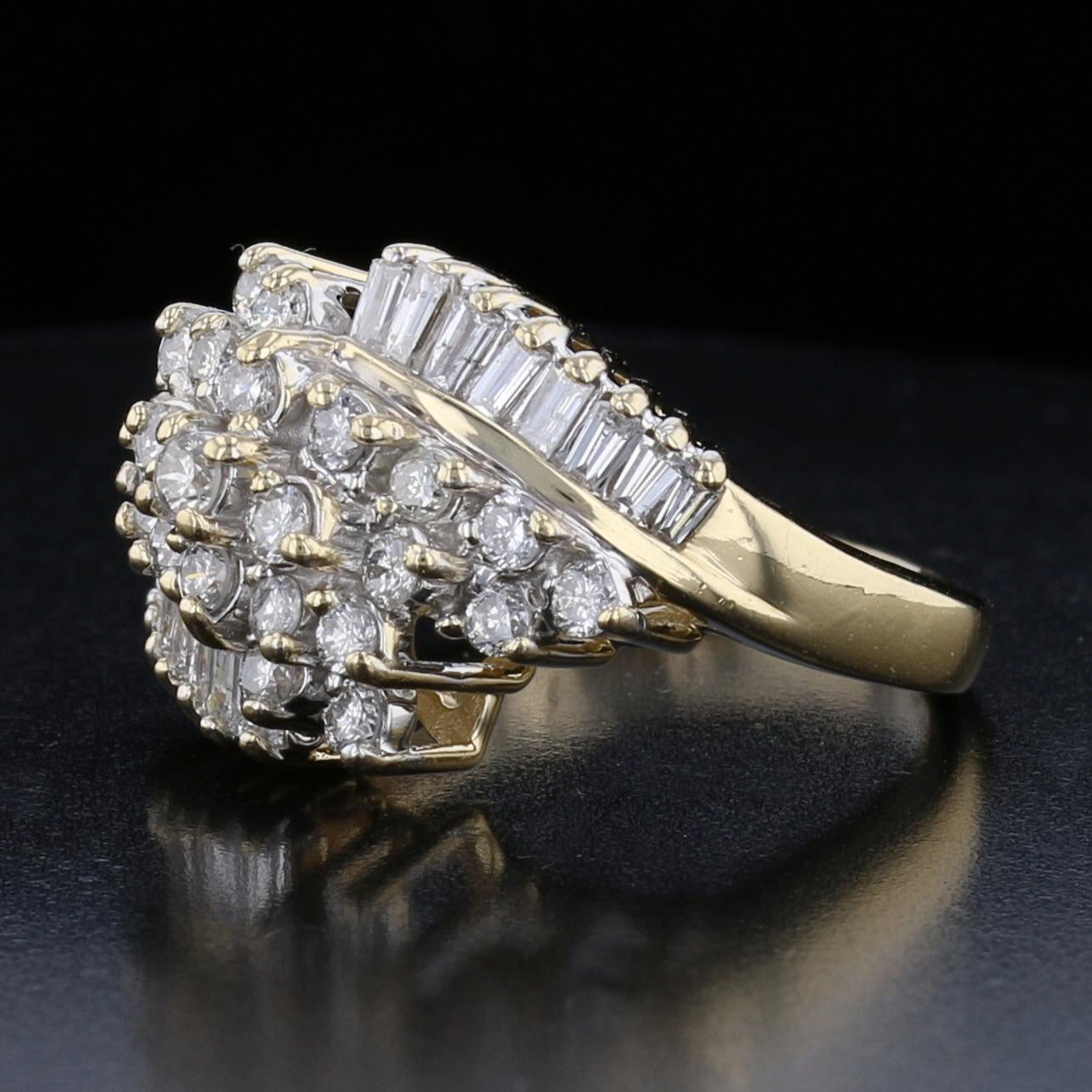 14K Yellow Gold Round and Baguette Diamond Ring