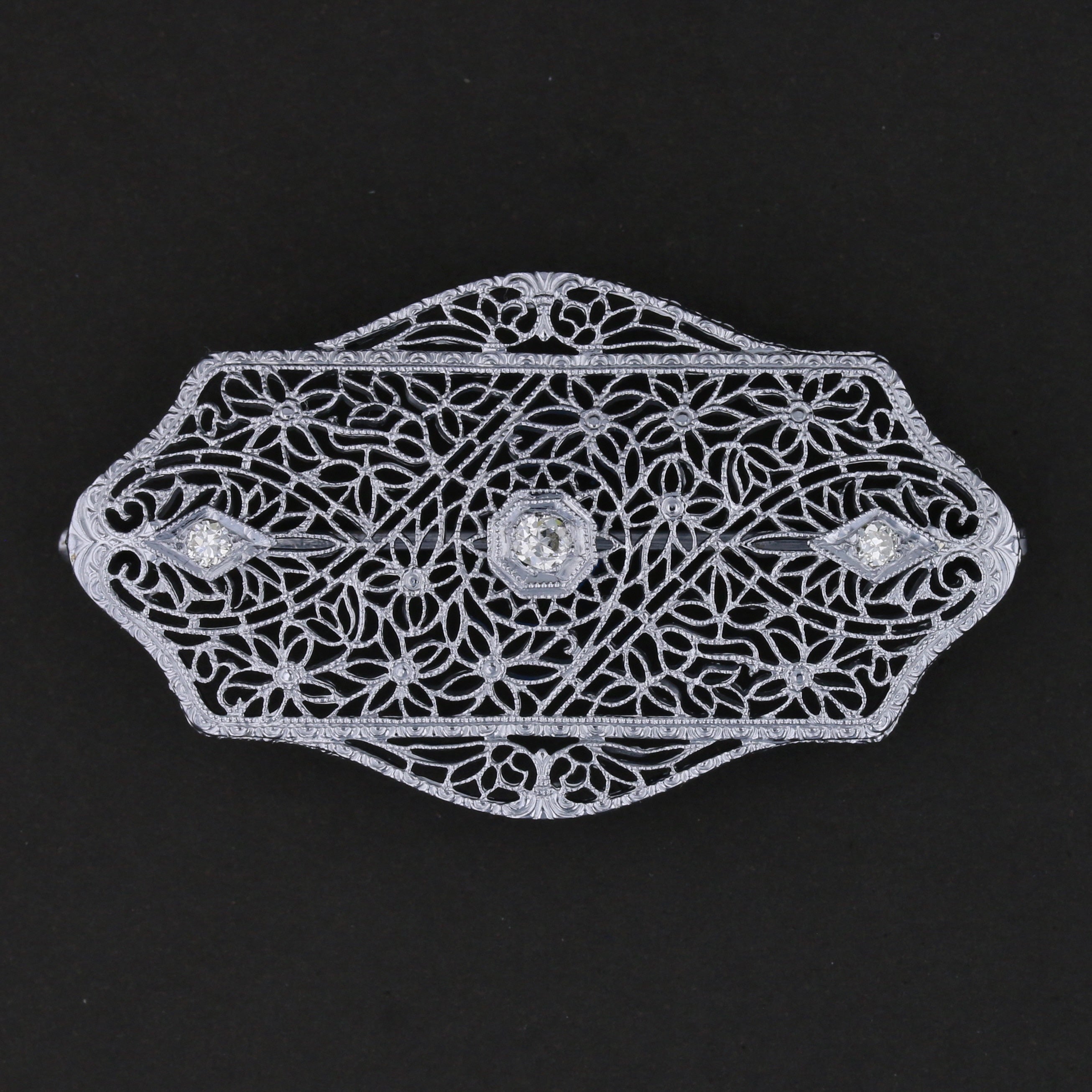 Diamond Gold Brooch 5.16gr, 14KWG, White, Diamond, Round, I,