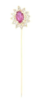Yellow Gold Ruby & Diamond Pin
