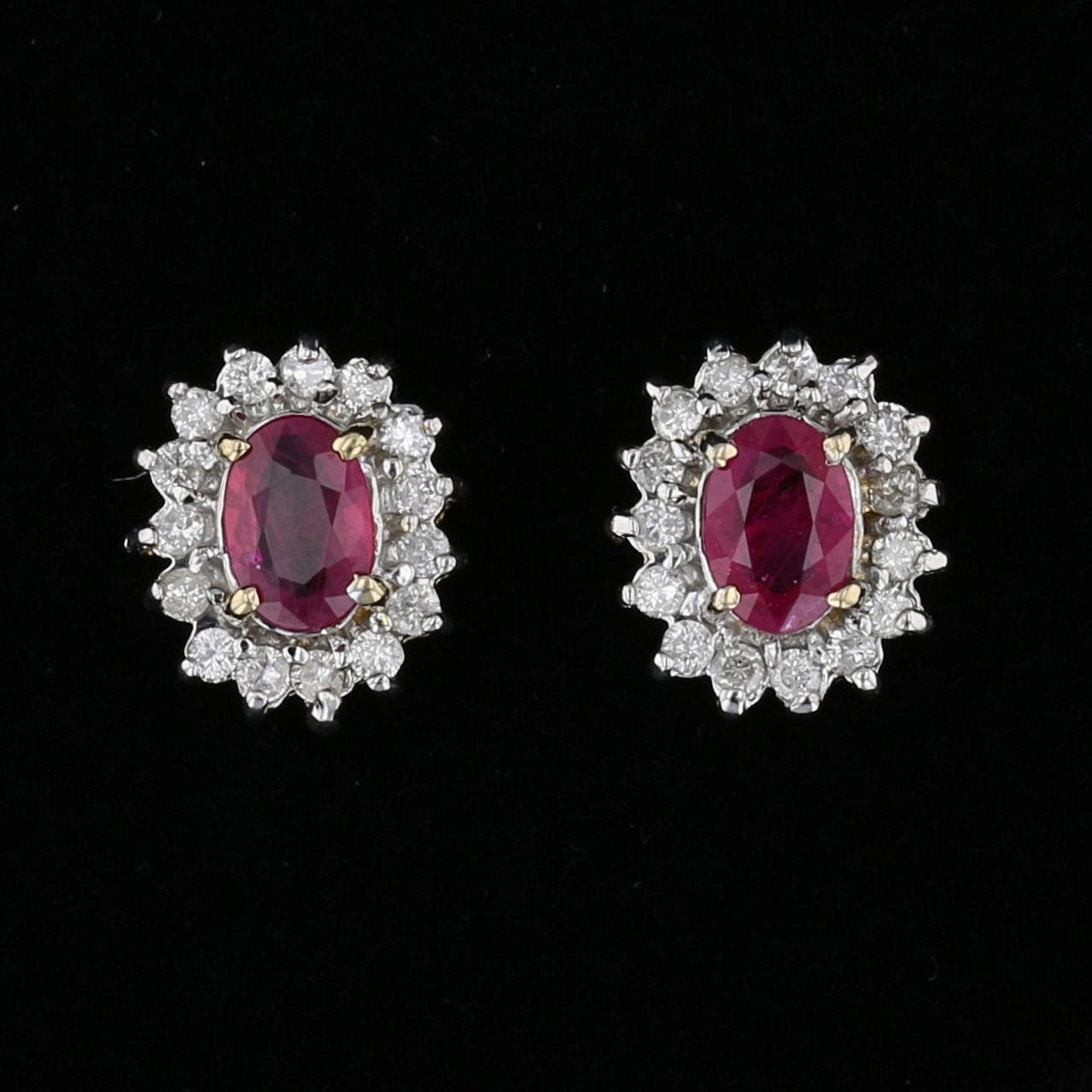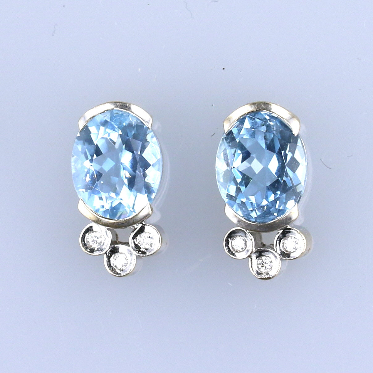 18K White Gold Blue Sapphire & Diamond Stud Earrings