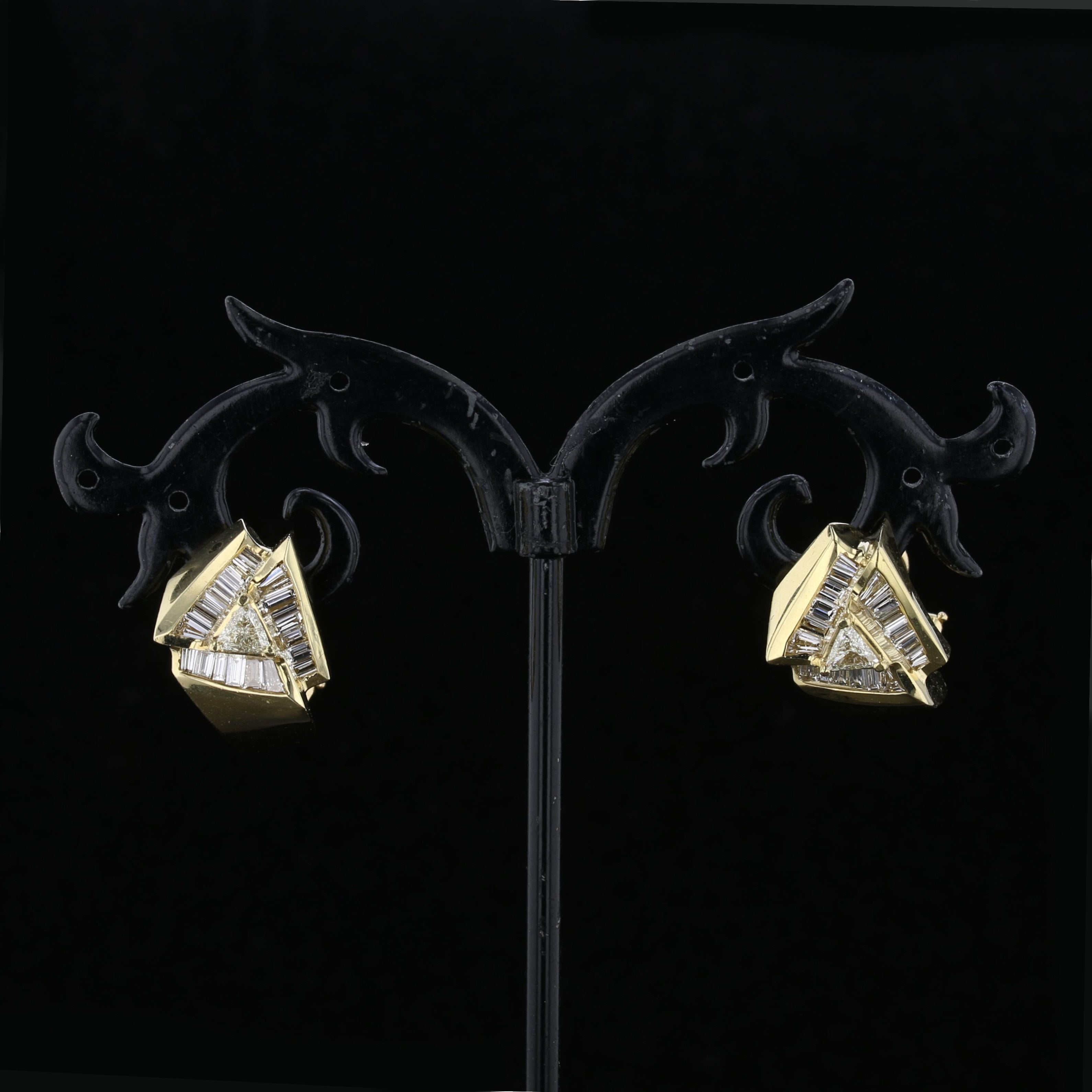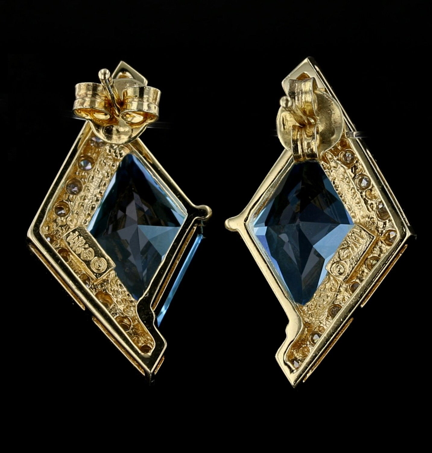 18K Gold Blue Enamel Diamond Lattice Clip-On Earrings - Vintage Designer Style