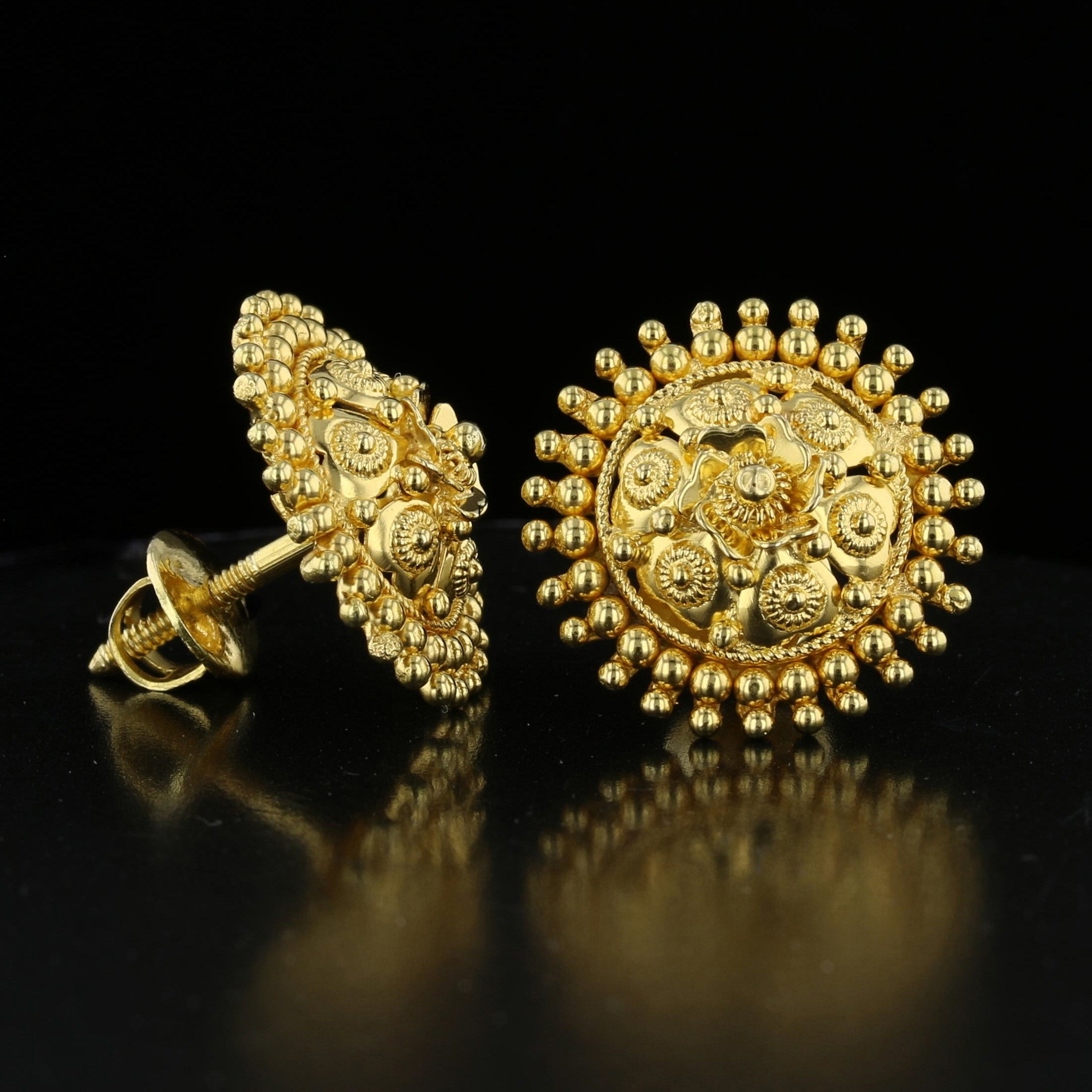22K Yellow Gold Vintage Textured Starburst Stud Earrings