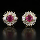 Elevate your jewelry collection with these stunning Vintage Ruby & Diamond Stud Earrings. Crafted in 14K yellow gold, these earrings feature vibrant 1.3ct rubies surrounded by 1.96ct of sparkling diamonds. The exquisite combination of round and baguette diamonds creates a timeless and luxurious design, making these earrings perfect for any special occasion or everyday elegance.