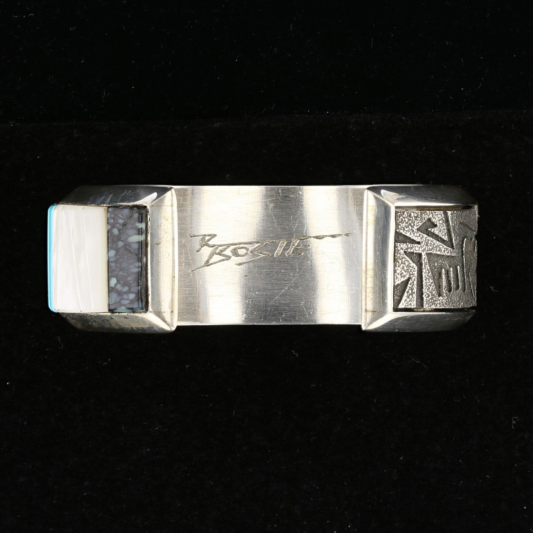 - Design: Engraved Silver & Geometric Stone Inlay