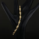 This bracelet is crafted from solid 14K yellow gold, known for its durability and timeless warm tone.