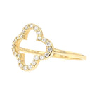 Description: This delicate ring is crafted from 1.62 grams of 14K yellow gold and features a clover design set with sparkling diamonds. The ring is a size 6 and has an item code of 892004.
