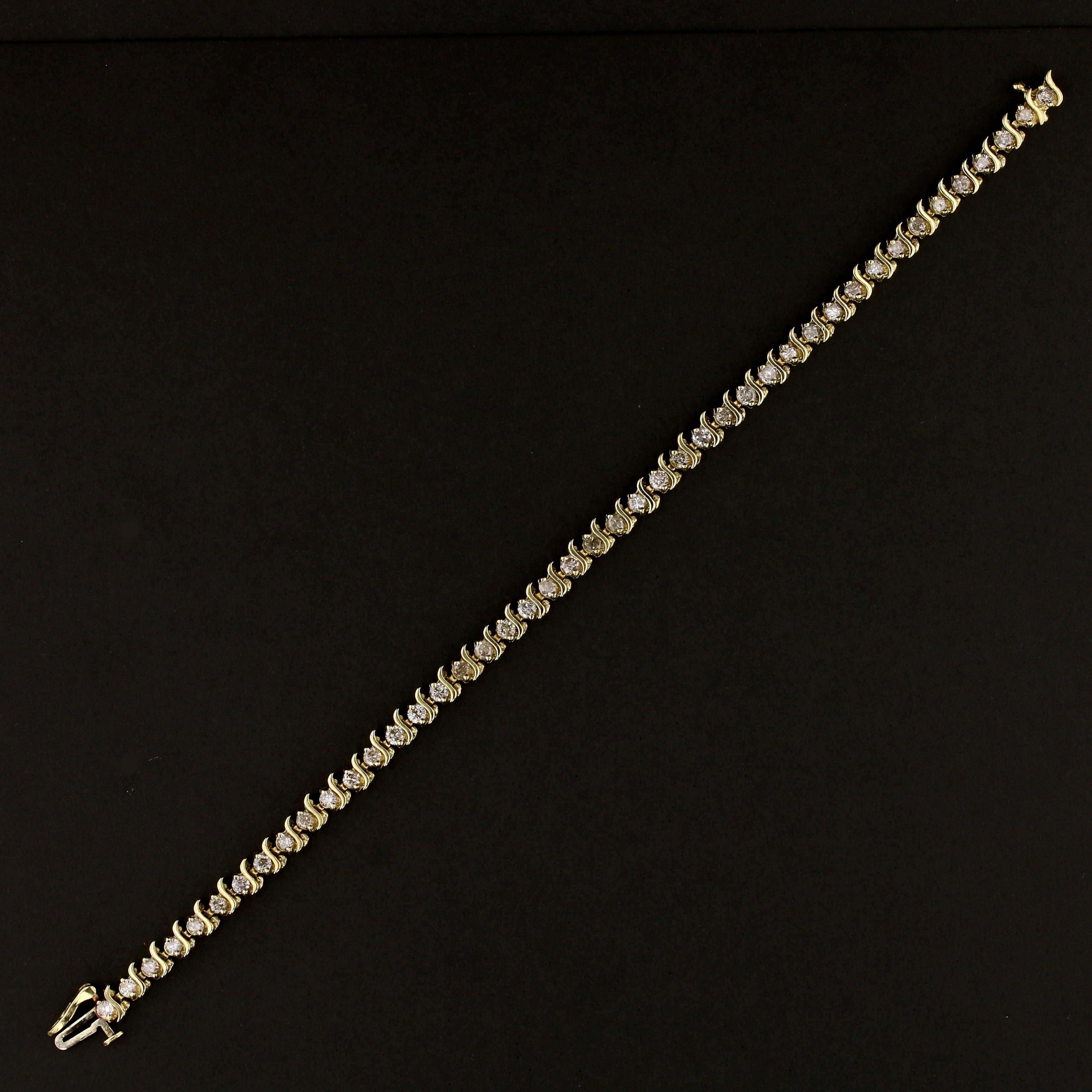Embrace timeless elegance with this vintage diamond tennis bracelet. Crafted in 14K yellow gold, this piece weighs 11 grams and features 42 round diamonds with a total weight of 3.35 carats. The diamonds are of J-K color and I1 clarity, making this bracelet a perfect blend of vintage charm and modern sophistication.