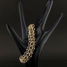 Elevate your jewelry collection with this exquisite Vintage 14K Yellow Gold Wide Link Bracelet. Expertly crafted with a bold and elegant design, this 7-inch bracelet features an intricate pattern of interlocking links, creating a luxurious texture and refined shine. Weighing an impressive 22.7 grams, this statement piece exudes timeless sophistication and is perfect for both special occasions and everyday wear.