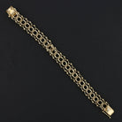 Made of genuine 14 karat yellow gold, this vintage bracelet secures with a classic box clasp and safety latch for added peace of mind. Whether you're a collector or simply looking for a distinctive piece of gold jewelry, this bracelet delivers unmatched craftsmanship and lasting value.