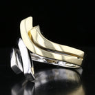 Elegant vintage 14K yellow and white gold two-tone ring with bold overlapping curves. A perfect size 7 statement piece for mixed-metal lovers.