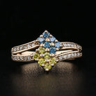 • Center Stones: Blue Diamonds (treated) & Yellow Diamonds