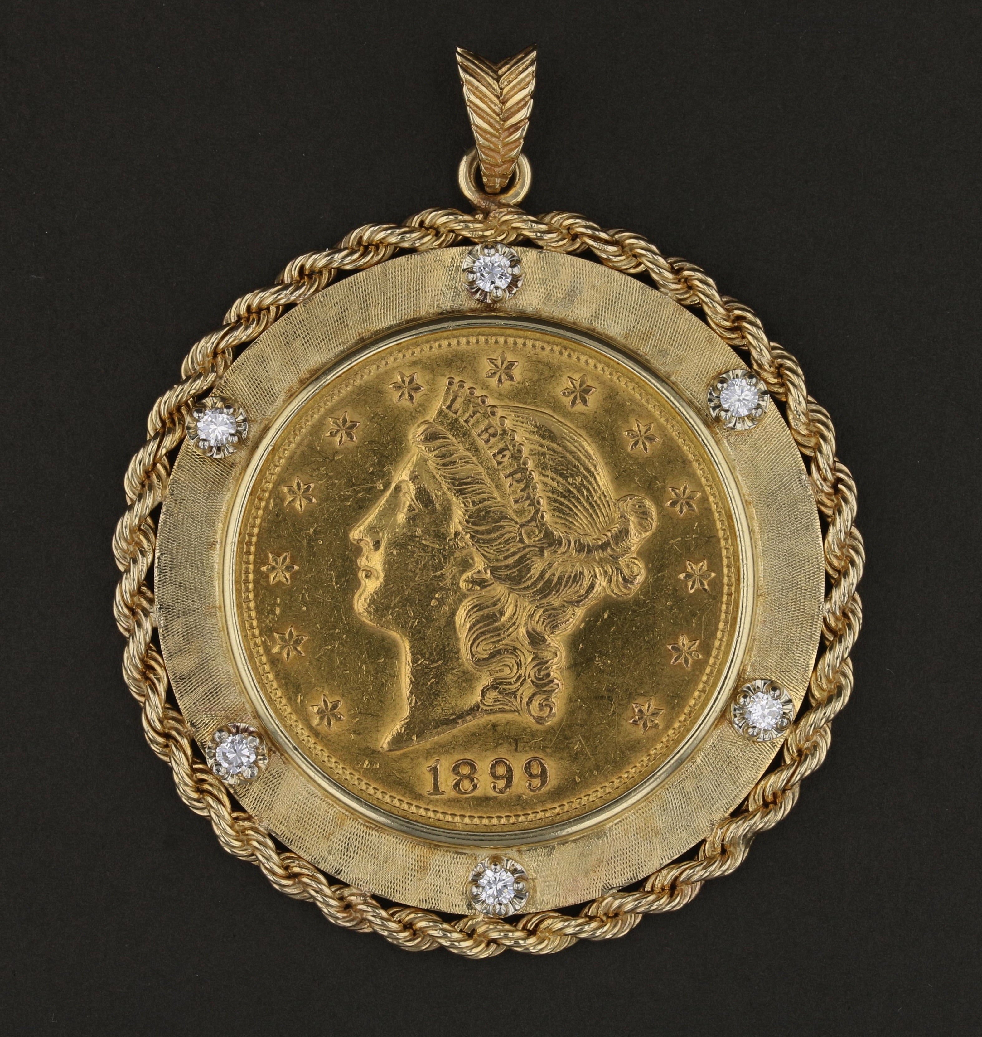 1899 $20 Liberty Coin Diamond Pendant 891558