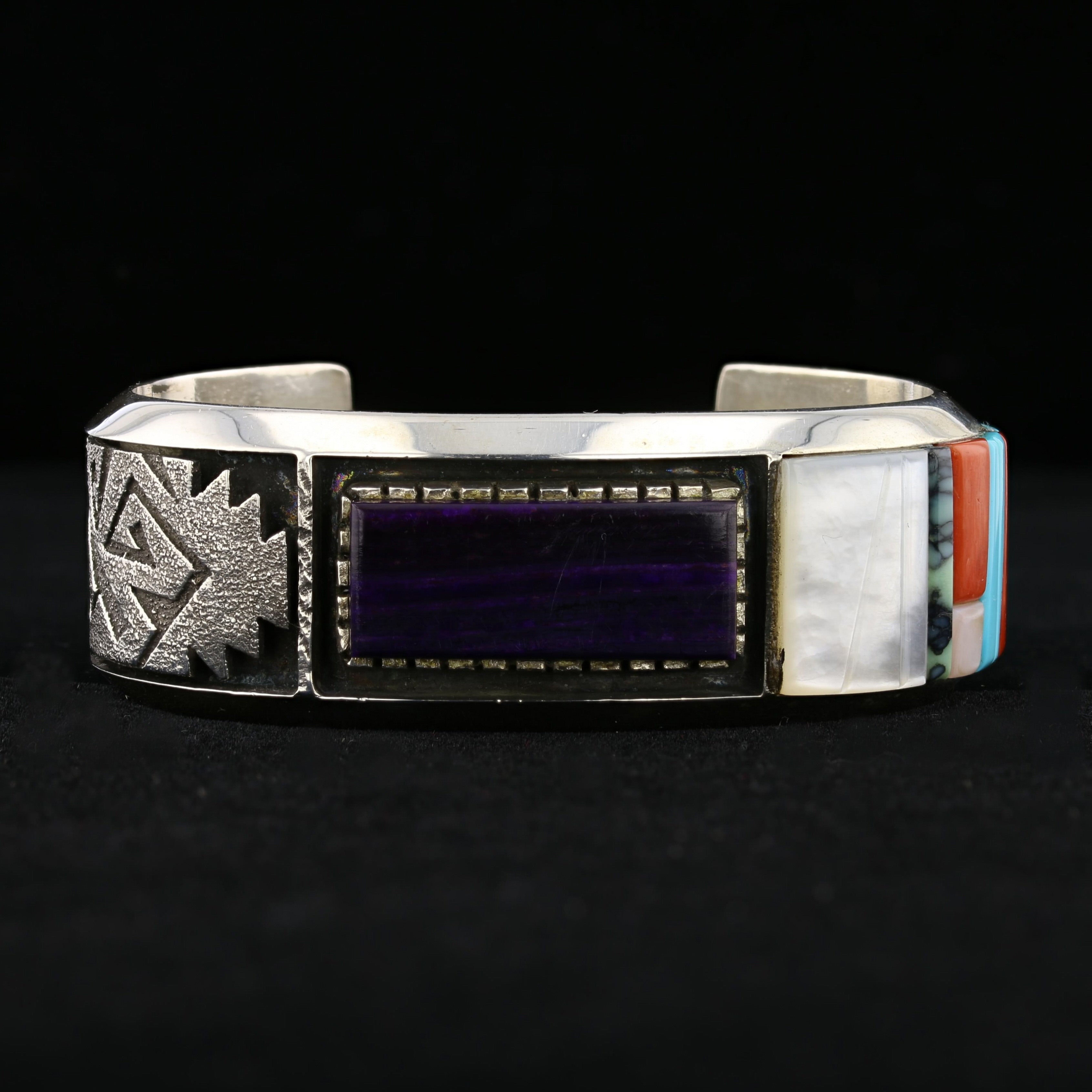 Patterned Bangle Bracelet with Heart & Apple Charms