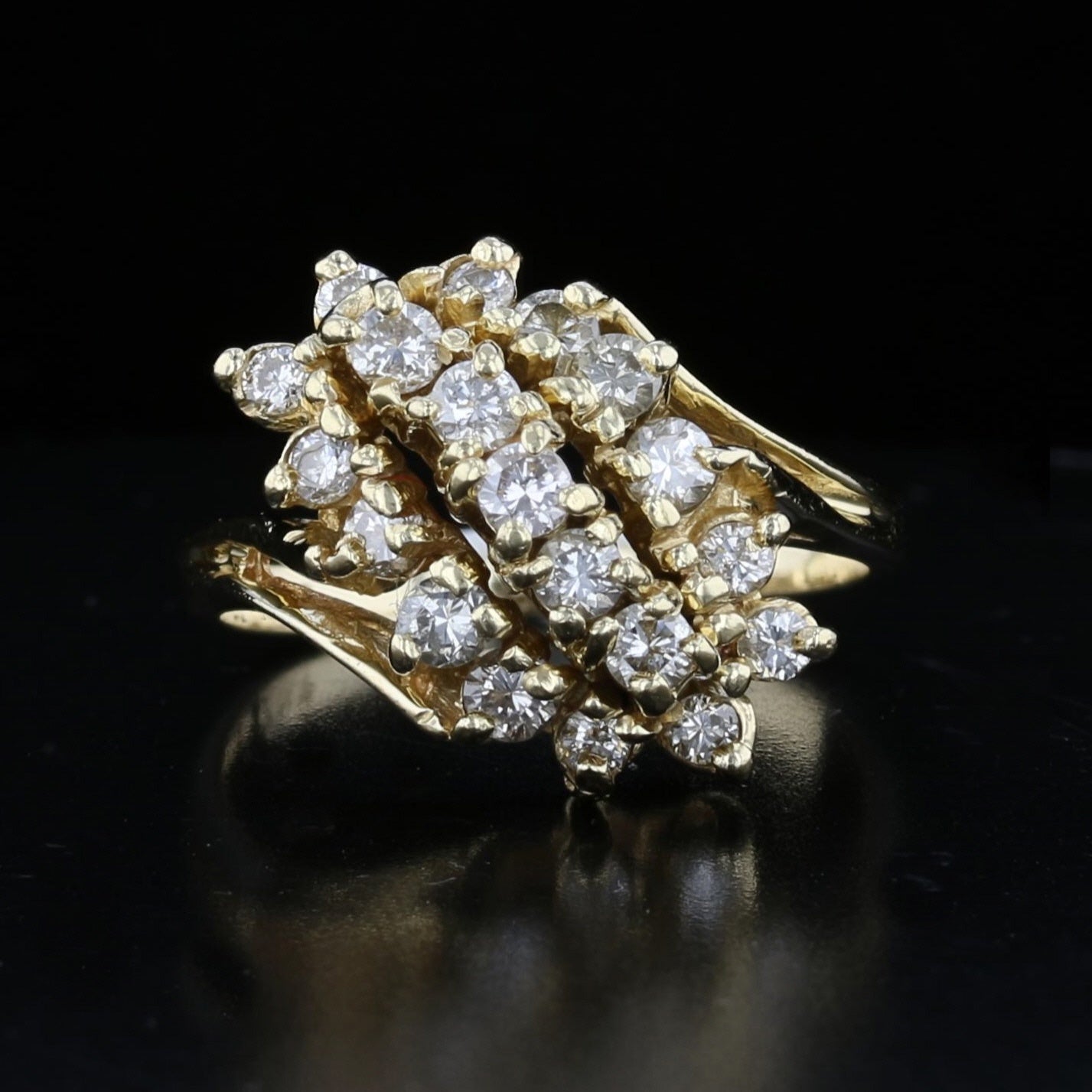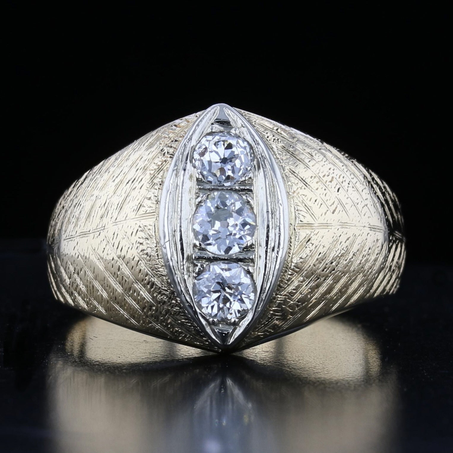 Vintage Yellow Gold Baguette and Round Diamond Ring