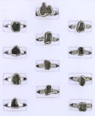 Each ring features genuine Moldavite, a rare tektite formed from a meteorite impact over 15 million years ago – raw, vibrant, and ethically sourced.
