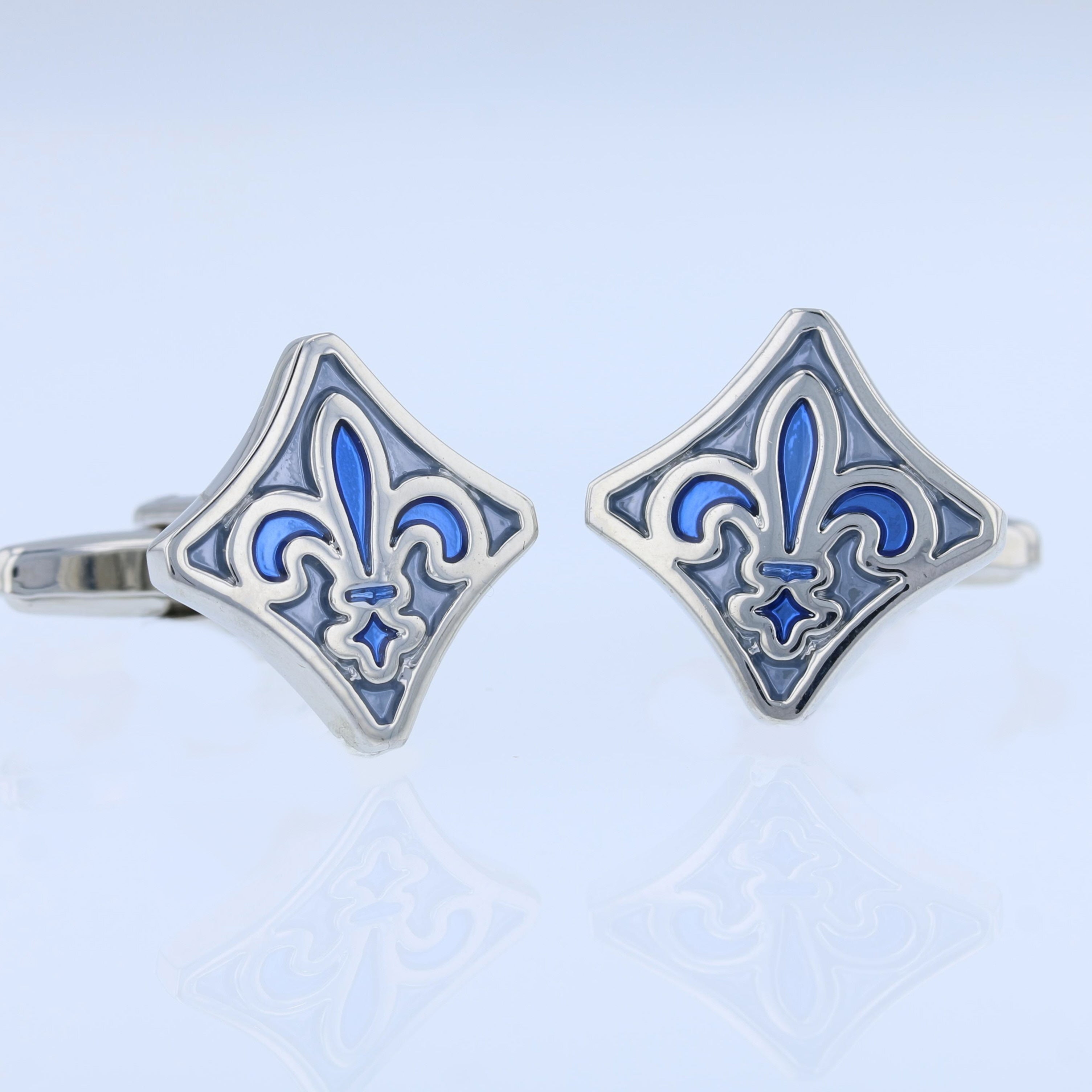 Small Fleur-de-Lis Cufflinks – Blue Enamel Elegance