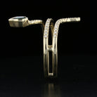 Turn heads with this striking Emerald and Diamond Snake Ring, a modern symbol of transformation and power. Crafted in gleaming yellow gold, the band wraps elegantly around the finger in a serpent-inspired design. A vivid pear-shaped emerald forms the head of the snake, totaling 0.35 carats, while shimmering round-cut diamonds—0.30 carats in total weight—grace the curves of the band. With its sleek silhouette and symbolic meaning, this contemporary ring is a fierce statement piece for any jewelry lover.