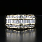Vintage 14K yellow gold diamond band featuring 18 baguette and 28 round diamonds. Elegant multi-row design, perfect for timeless style.