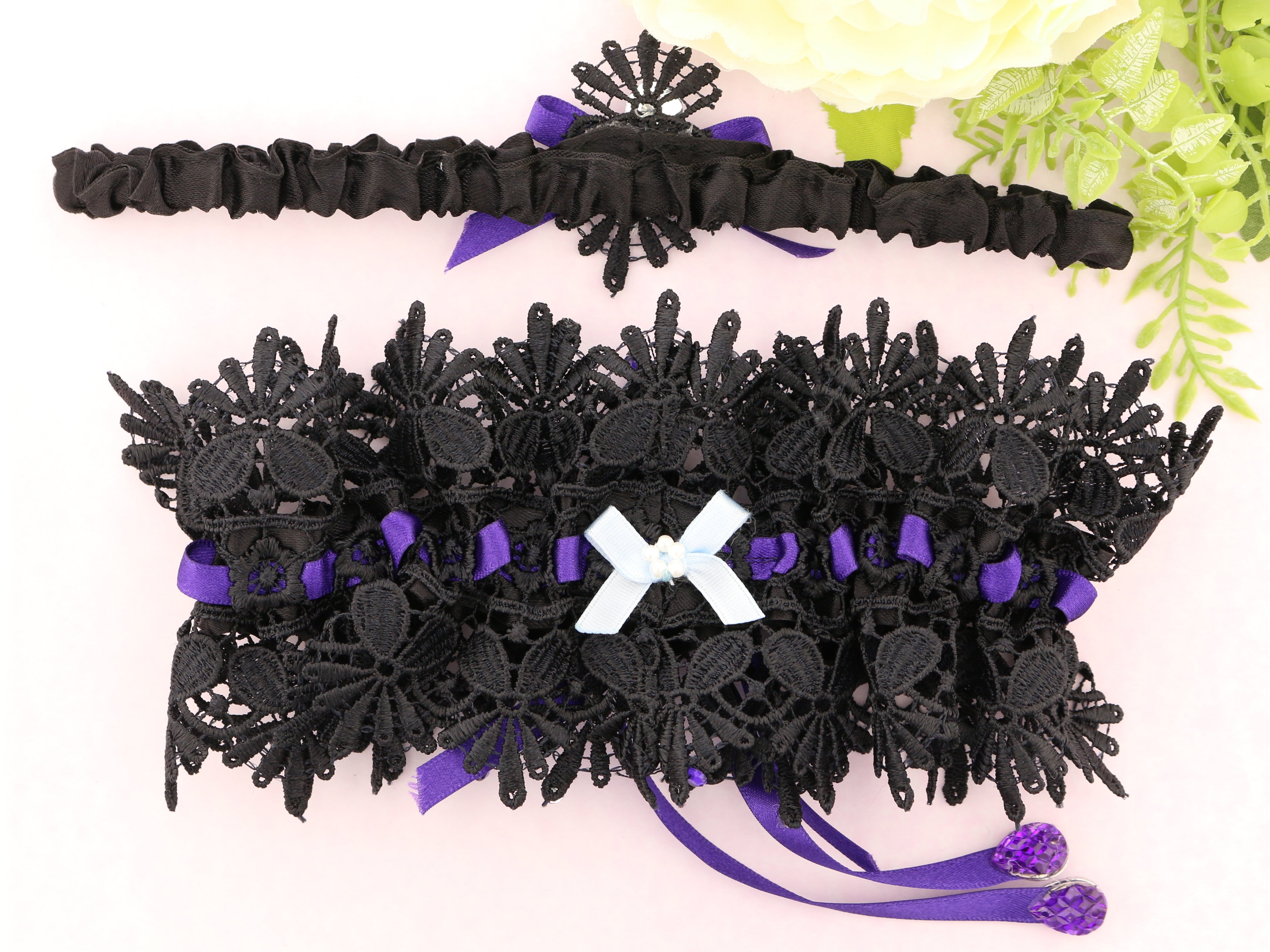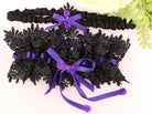 Title: "Belladonna: Guipure Black Lace Garter with Luscious Purple Satin Ribbon | Perfect for Burlesque, Dramatic Bridal, and Gothic Enthusiasts"