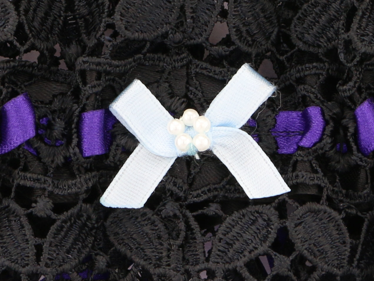 Belladonna: Guipure Black Lace Garter with Luscious Purple Satin Ribbon